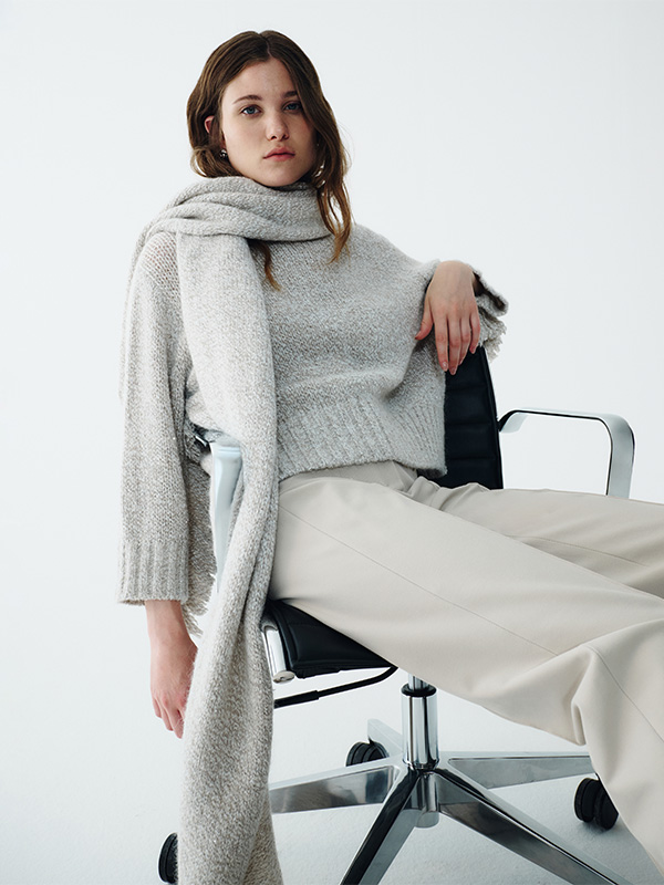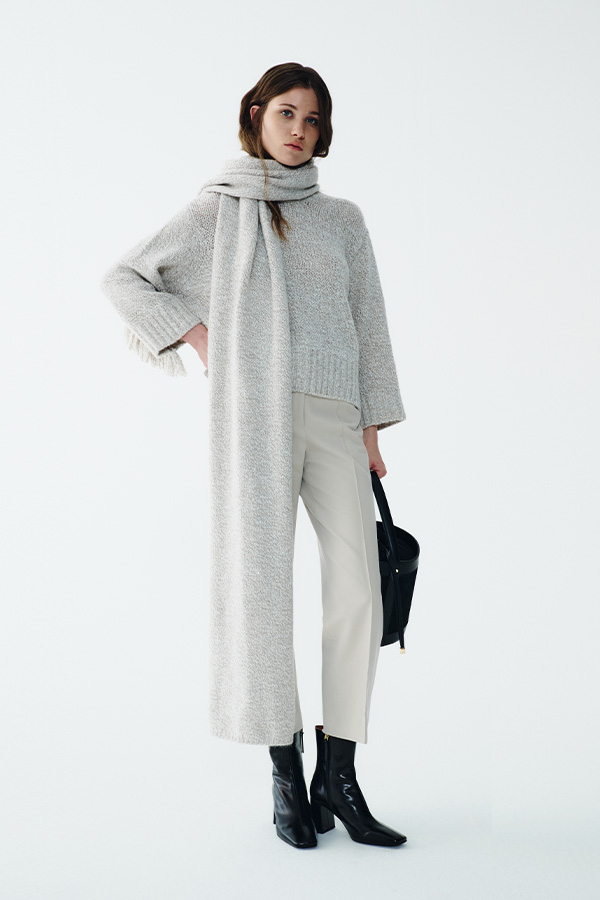 The secret of your style lies in layering: layer knitted maxi scarves over cosy turtlenecks to create striking monochrome looks.