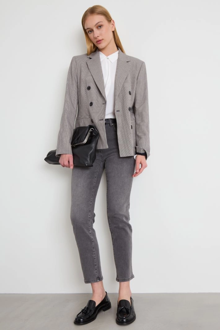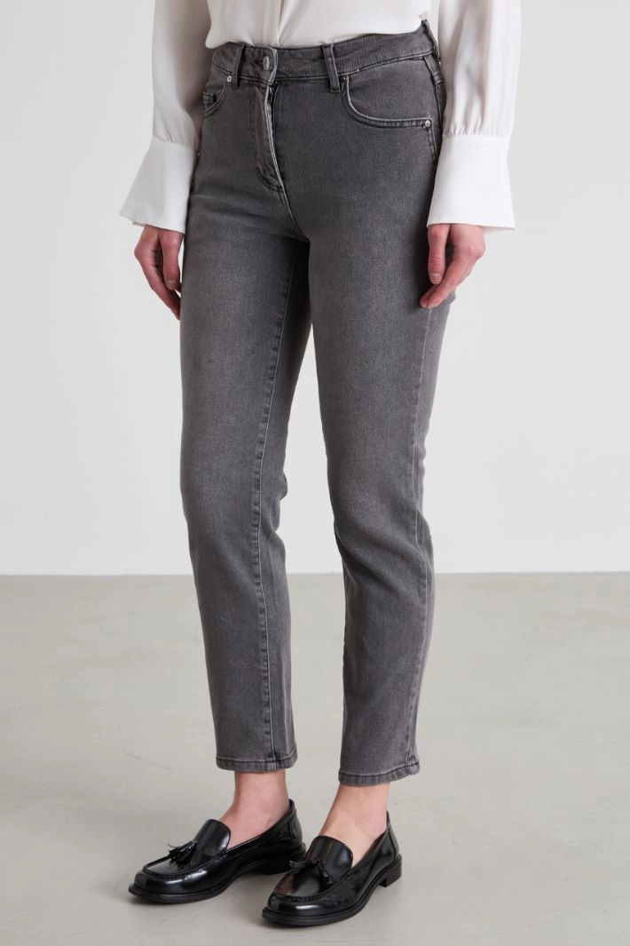 Semi-fitted jeans in stretch cotton denim, with belt loops and five pockets. Zip and button fastening.