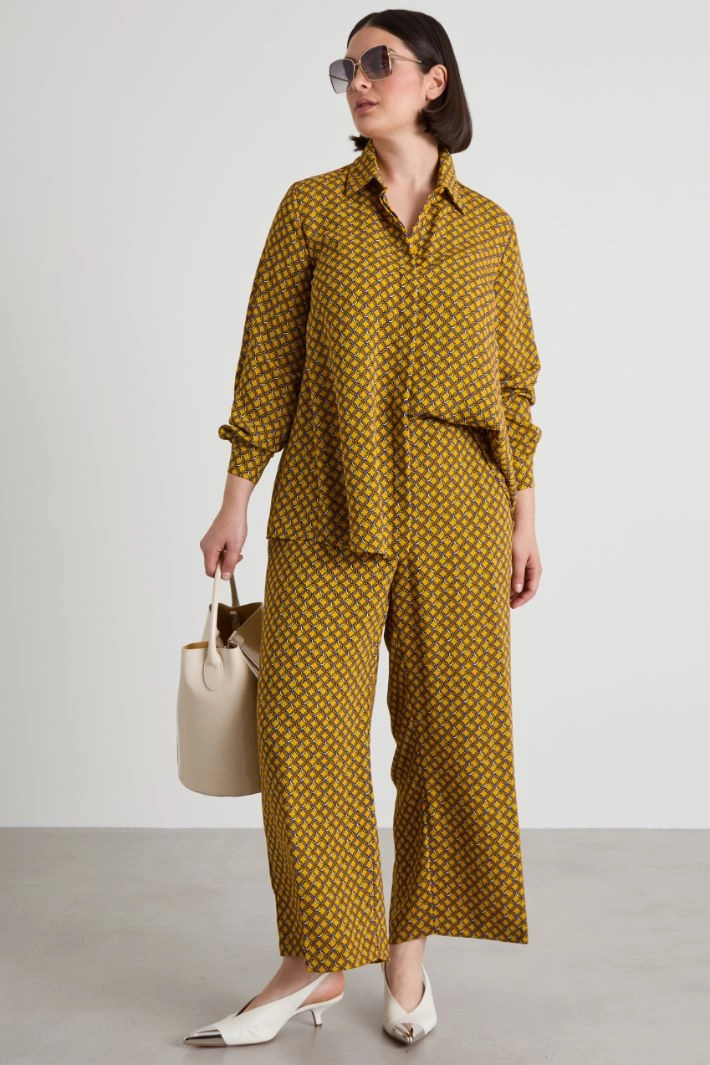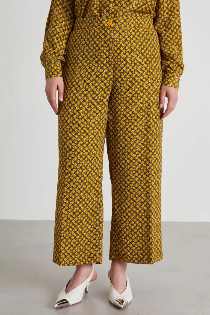 Straight-fit trousers in printed cady, with elastic waistband insert on the back, French pockets and crease ironed lengthwise. Zip and button fastening.
