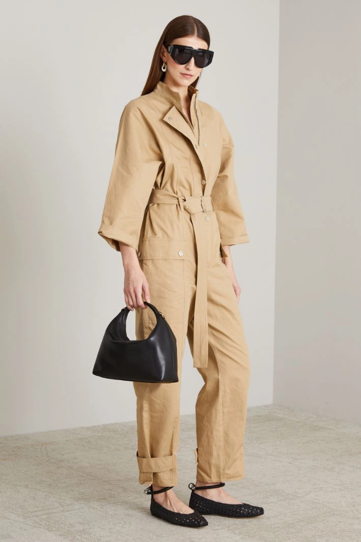Basketweave jumpsuit with belt