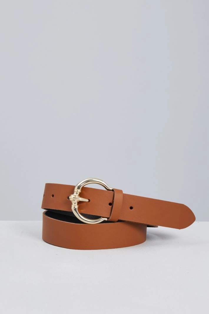 Belt in genuine smooth leather, with single loop and rounded metal buckle.