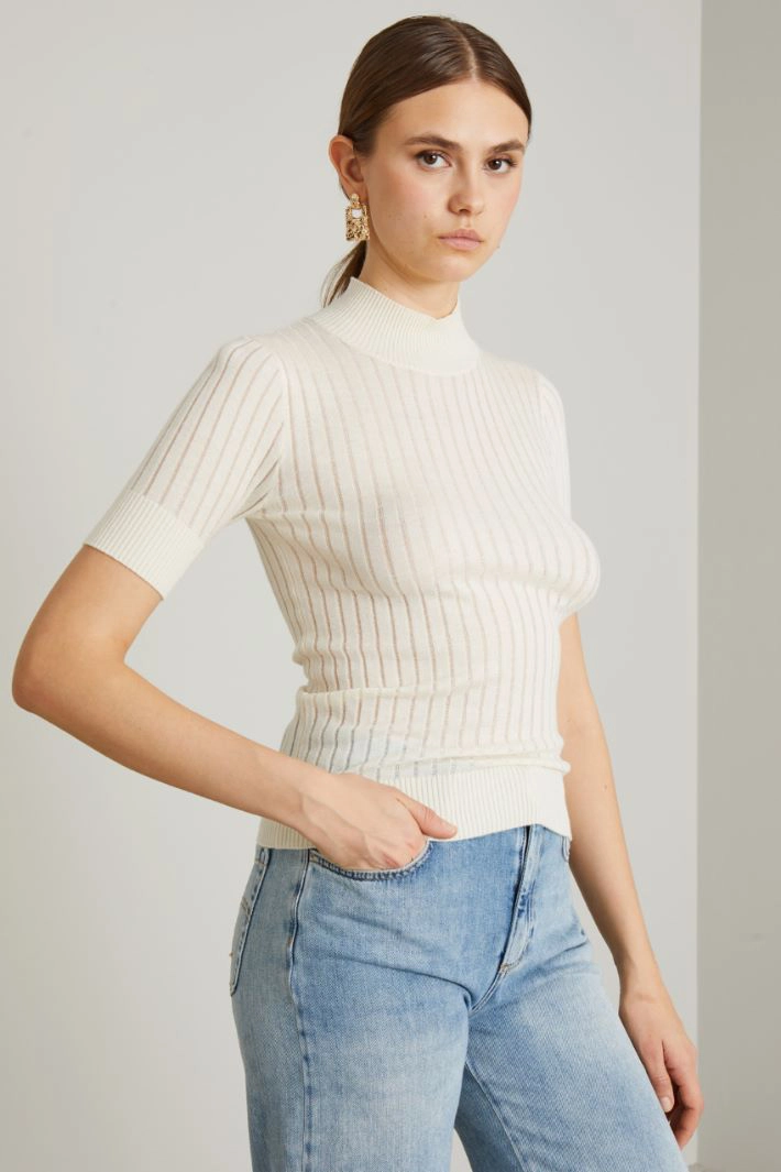 Fitted sweater with flat ribs