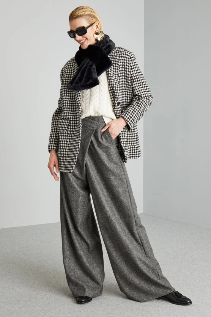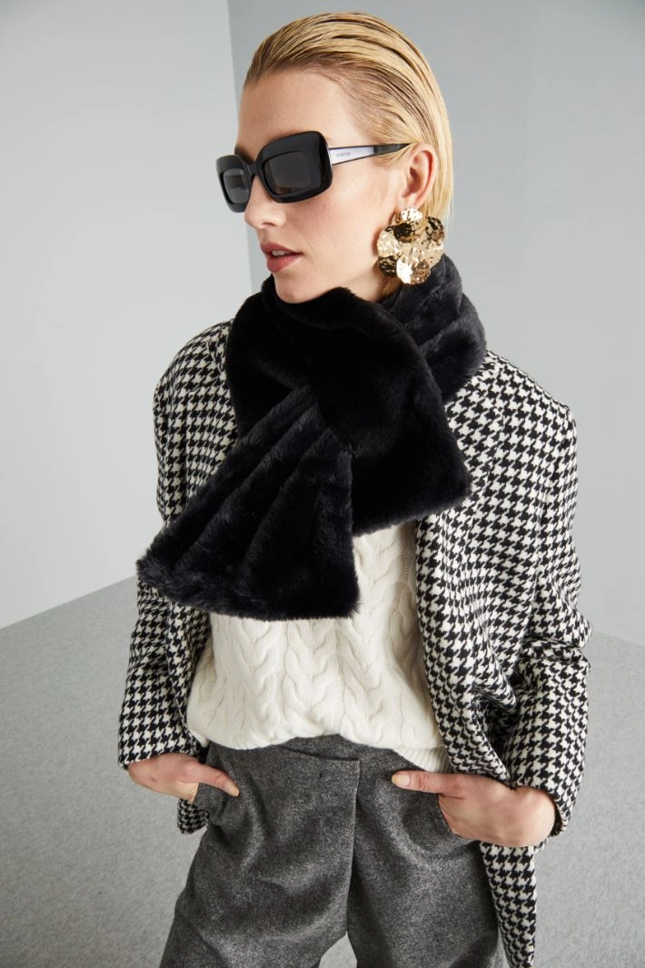 Scarf in faux fur fabric with maxi buttonhole detail.